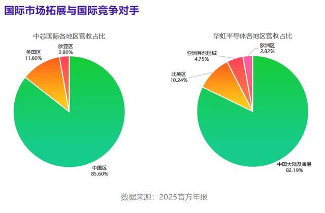 如上图所示,我们看到,目前不管是中芯,还是华虹,其营收贡献占比中,中国的订单是超过80%的,中芯的营收中,中国区占85.6%,华虹的营收中,中国区占82.19%,而几年之前,大家的订单都是海外占比更高,中国区的订单更少的。